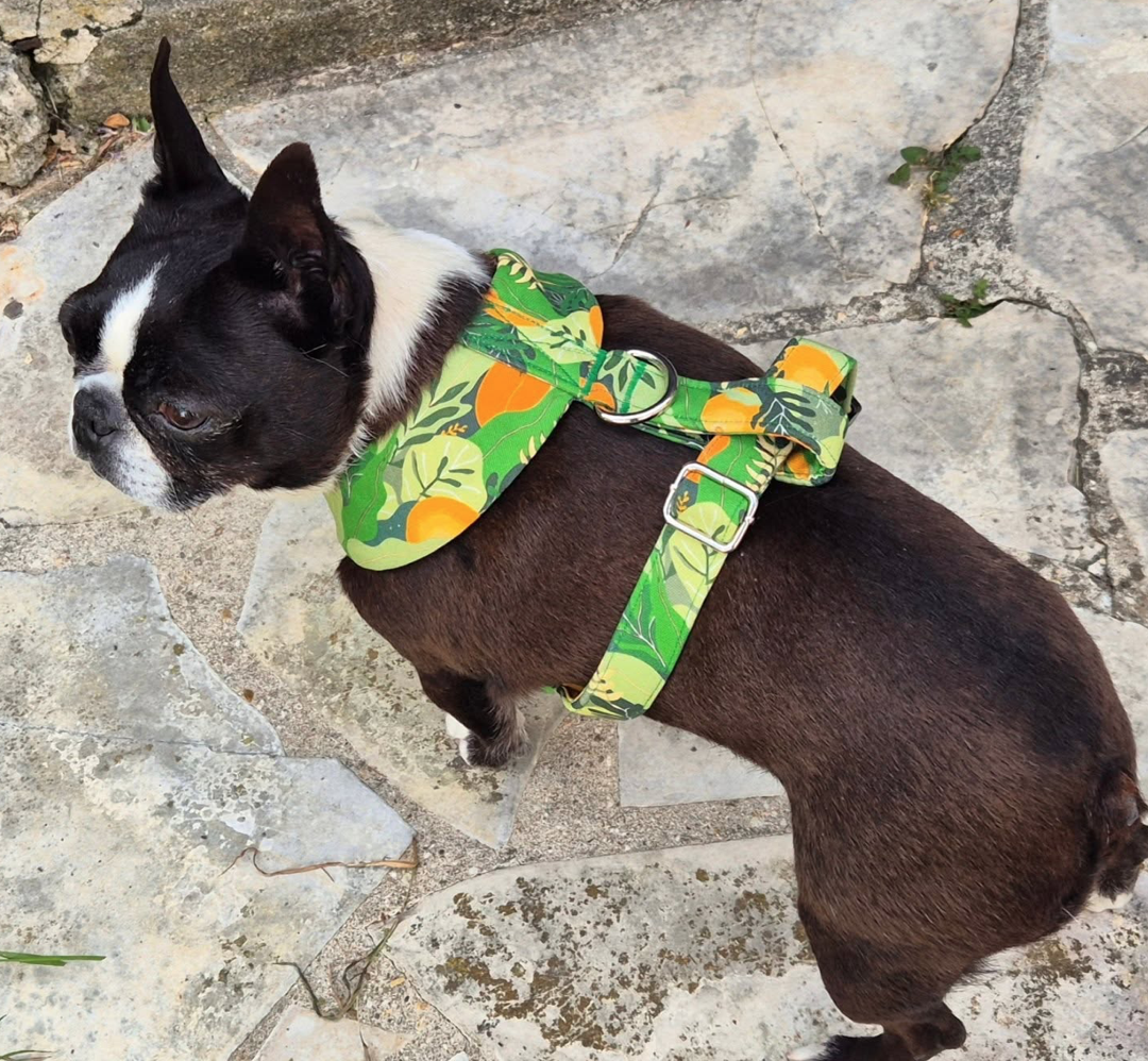 THE Mavi CHEST HARNESS IS HAND MADE WITH 100% COTTON FABRIC AND A BREATHABLE MESH LINING TO ENSURE MAXIMUM COMFORT ON YOUR WALKS. IT HAS A WELDED D-RING THAT HAS A BREAKING LOAD UP TO 300KG OF FORCE TO WITHSTAND ANY PULL AND THE CHEST AREA IS ADJUSTABLE.
