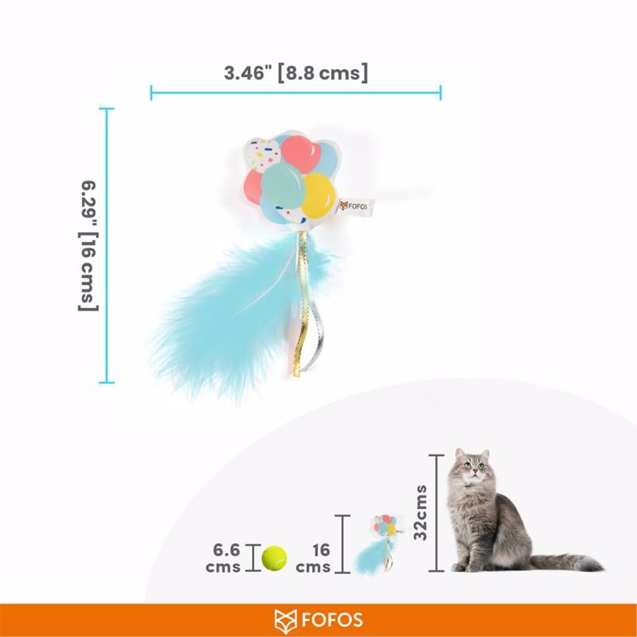 FOFOS Brinquedo de Balões com Catnip é o presente ideal para o aniversário do seu gato – ou para qualquer dia que mereça uma festa felina! Com um design alegre de balões e penas suaves que despertam o instinto de caça, este brinquedo contém catnip natural de alta qualidade, promovendo o bem-estar e a atividade física. Perfeito para gatos curiosos e brincalhões.